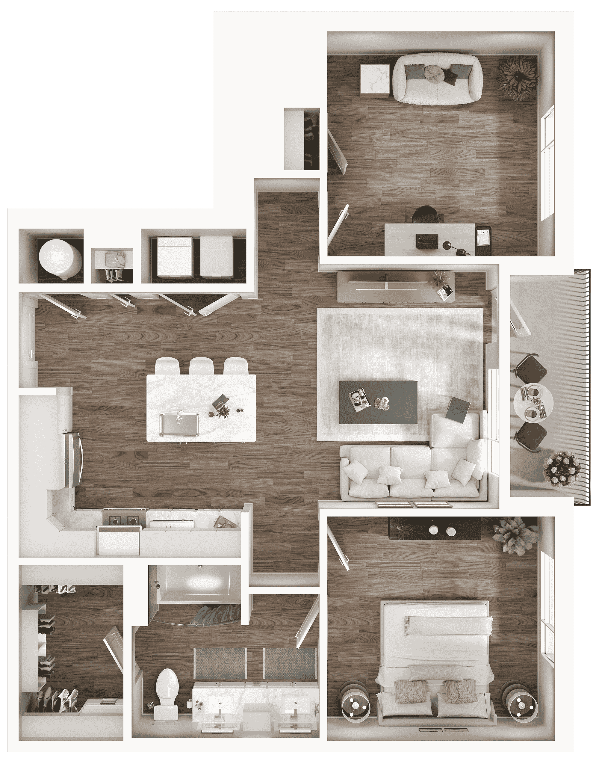 Floor plan renderings are intended for general reference only. Features, materials, fixtures and finishes may vary. Furniture shown in floor plans is a representation only. No furniture is included. Availability is not guaranteed and is subject to change. Pricing is not guaranteed and subject to change.